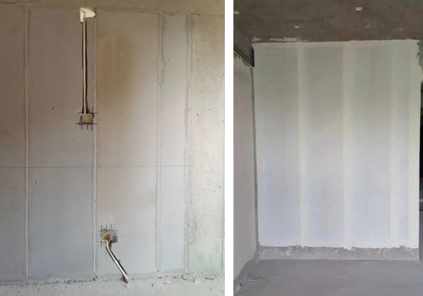 2、ALC隔墻板材或者叫加氣混凝土輕質墻板為現場測量、定尺加工生產,施工單面墻1天即可施工完成,ALC隔墻板材為干法施工,不存在現場濕作業。安裝完成后的墻面平整度誤差不超3mm,ALC隔墻板材墻面無需抹灰,施工完成即可進入墻面涂料油漆的施工工序。